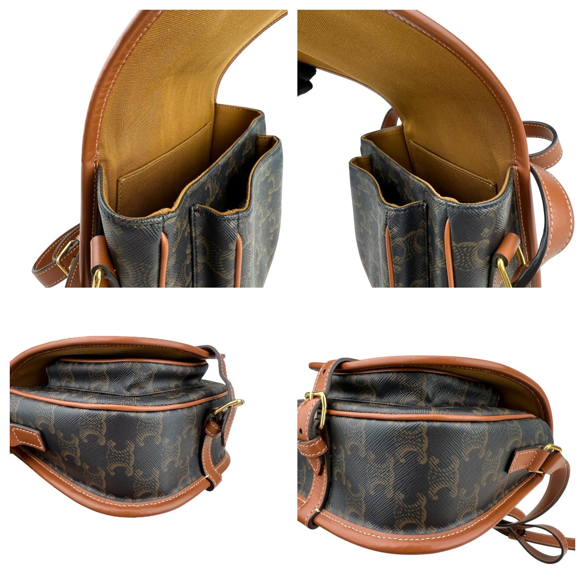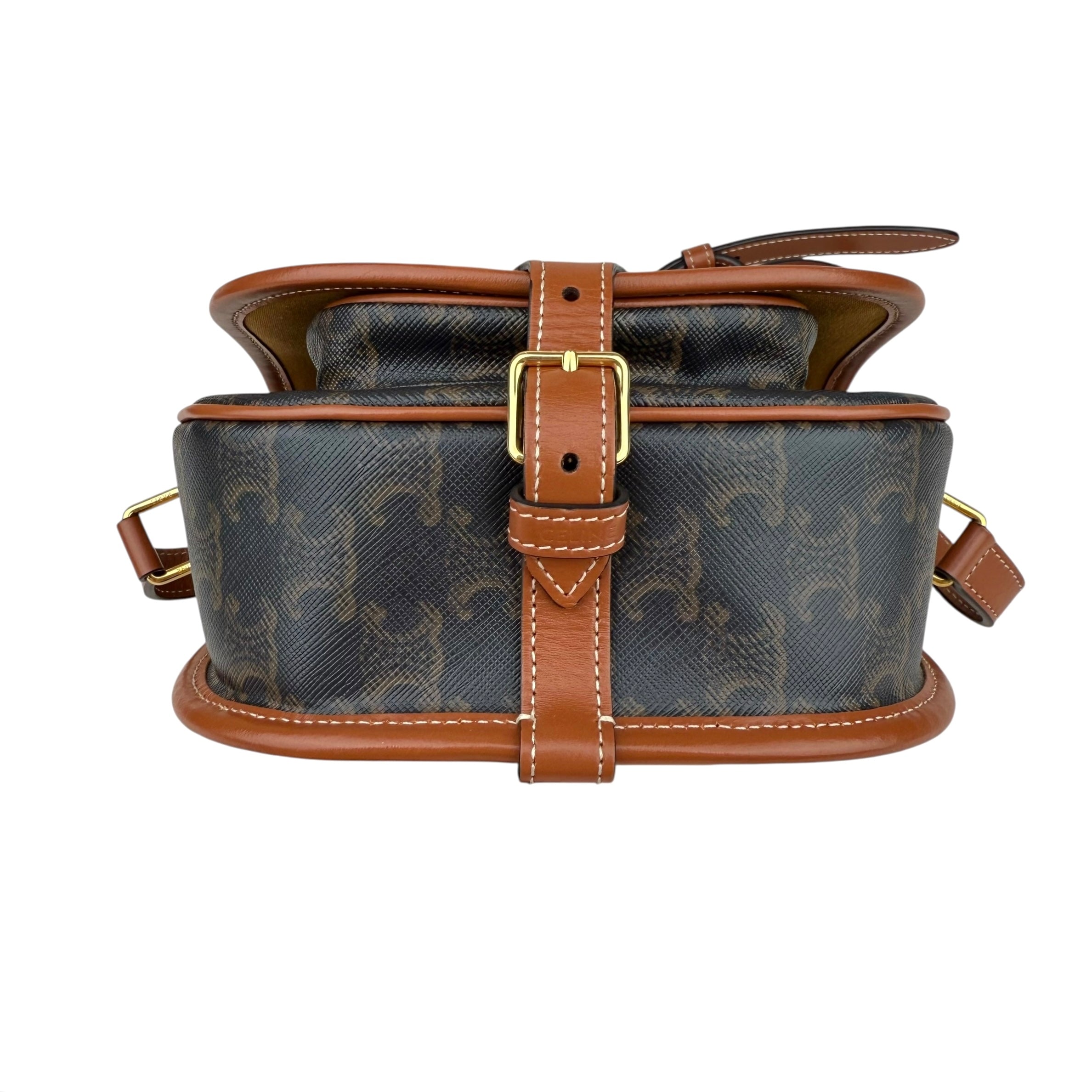 Celine Triomphe Canvas Medium Folco Bag Tan