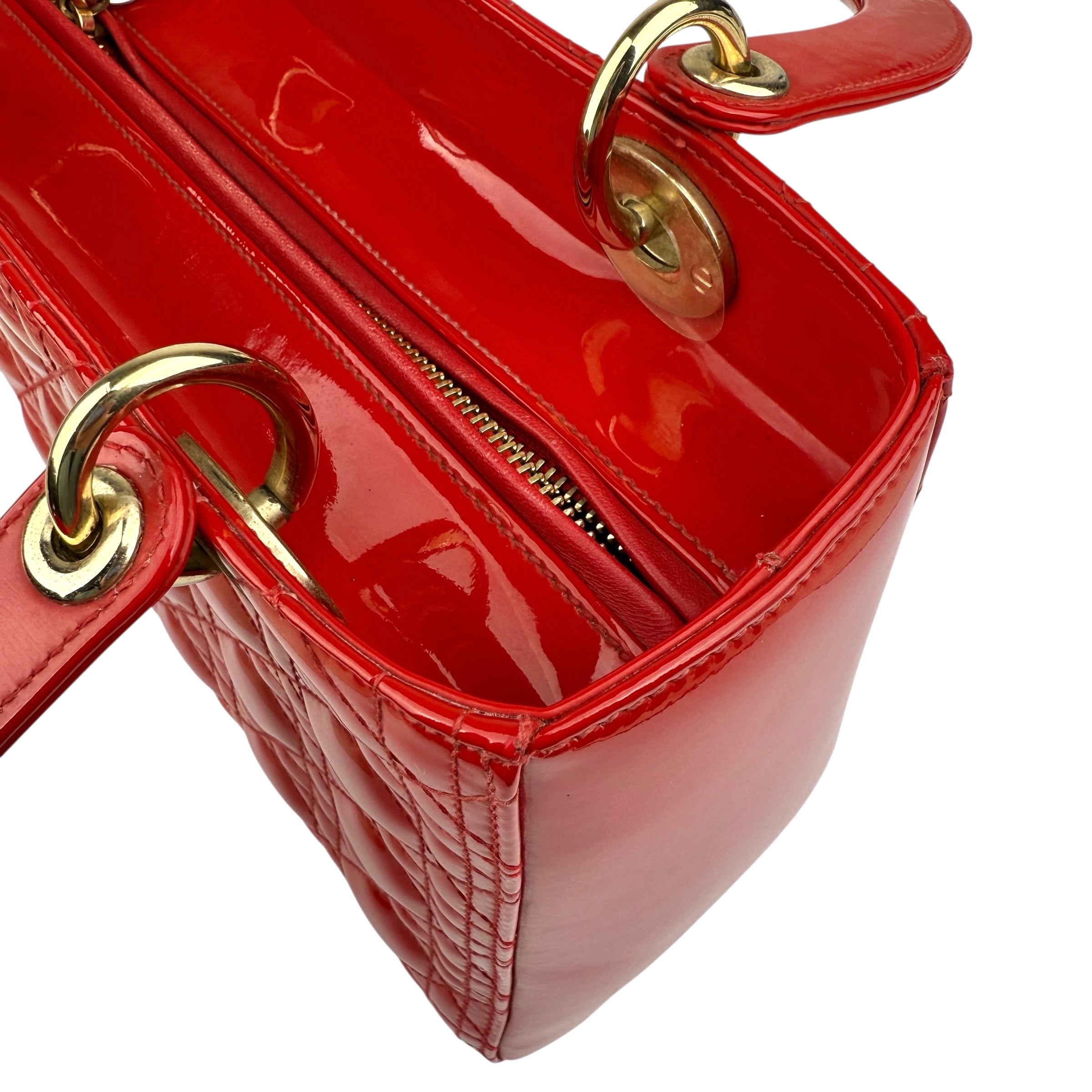 Christian Dior Lady Dior - Medium in Red, Cannage Quilted Patent