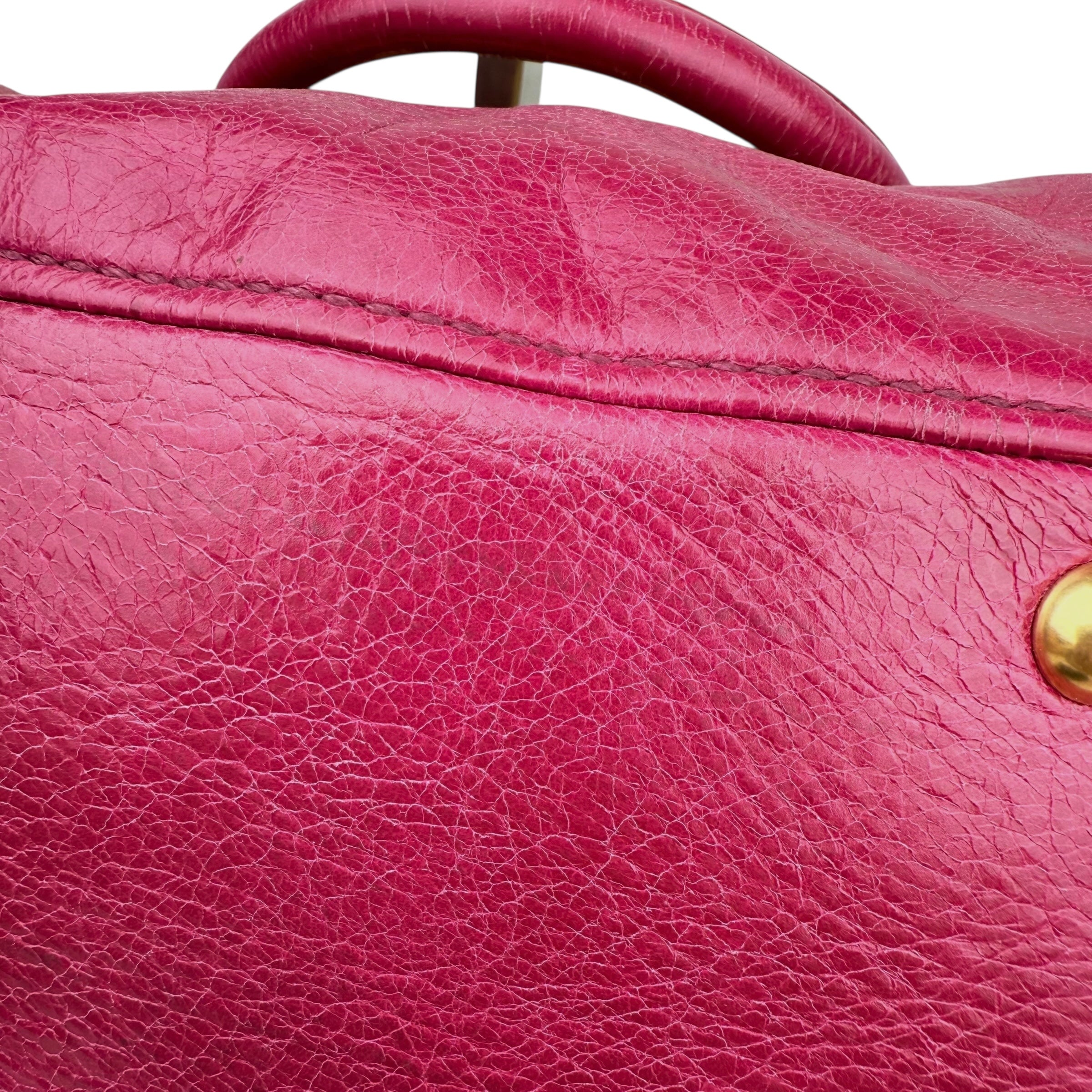 Leather: very good condition,small rubbing and scratches Metal fittings: small scratches and rubbing Handle/Strap: very good condition, small rubbing Inside: very clean Accessories: dust bag